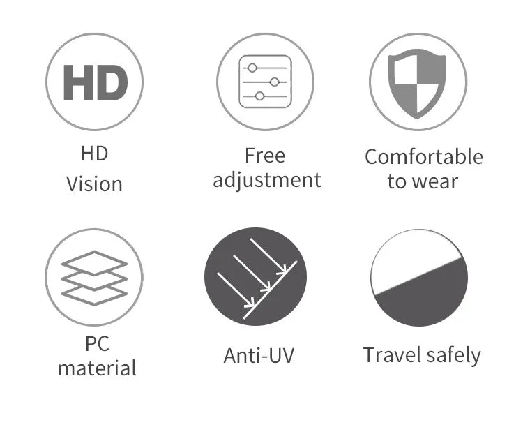 • 傷がつきにくく、UVカット機能付きポリカーボネート(PC)レンズ