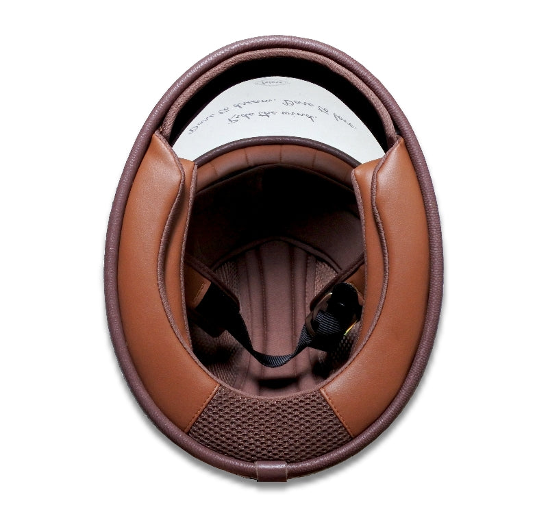 キャラメルカラーのライニングは、レトロ愛好家に人気のディテール。さらにゴールドの銅製アクセサリーが高級感を添え、洗練された雰囲気を一層引き立てます。